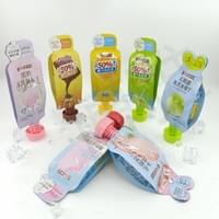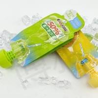 This is a new type of packaging bag independently developed by our company, which has obtained an invention patent certificate and can withstand pasteurization at 85 ℃ -90 ℃. Although the edge of the bag can be torn open, professional technology is used for sealing. The upper part of the tearable bag is embedded with a suction nozzle, which can be used to suck jelly drinks. The suction nozzle is connected to the suction nozzle cover with threads above, and there are different suction nozzle covers to choose from. The bottom of the jelly bag has a tearable opening. If you want to experience different flavors, you can put the bag in the refrigerator and refrigerate for 6 hours before taking it out. Tear along the tear opening to get delicious ice cream. One packaging, two ways of eating, this new type of packaging has become a hot selling product in the market, winning the trust and support of many customers.
